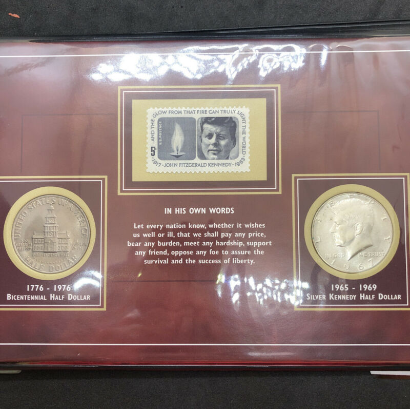 Title (ebay affiliate link): 1963 John F Kennedy Innagural Address 2 Coin Set & 1963 Stamp