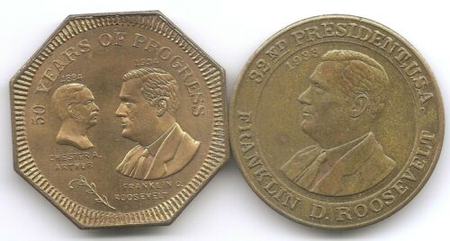 Title (ebay affiliate link): Lot of 2 1934 Union May-Stern St. Louis, MO Good for $2.50 Token C. Arthur FDR