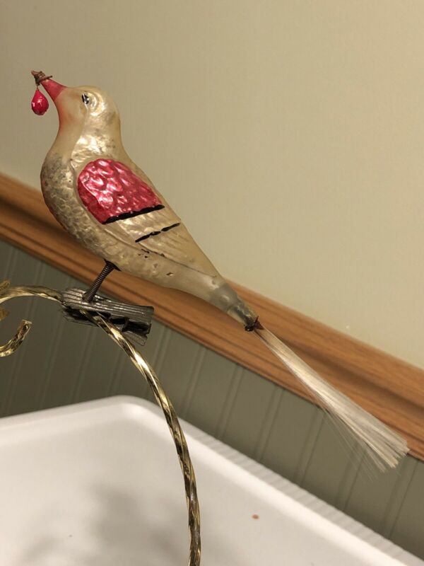Title (ebay affiliate link): Vintage Mercury Blown Molded Glass Clip On Bird Ornament Bristle Tail Imperfect
