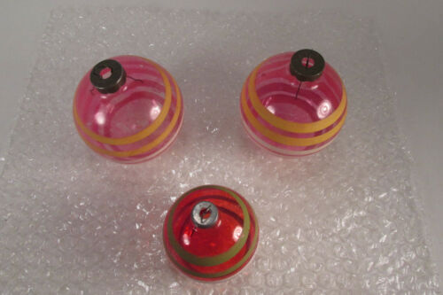3 Vintage Unsilvered Glass WWII Era Christmas Ornaments Stripes 2 Sizes