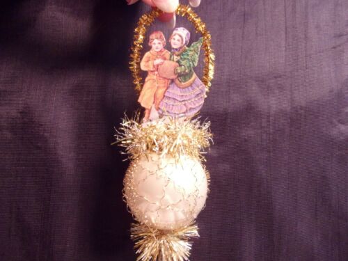 Antique Look CHRISTMAS Ornament, 2 KIDS SCRAP, Glass, Tinsel, Handmade