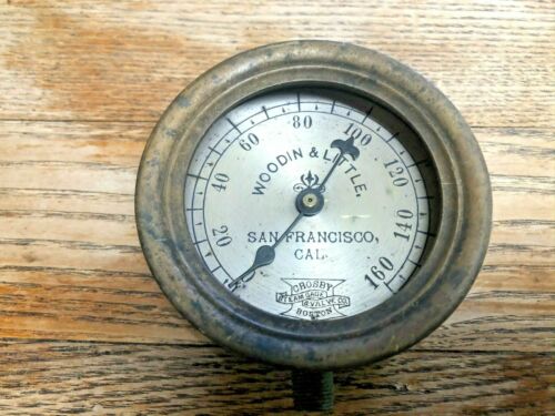 Title (ebay affiliate link): Vintage Crosby Steam Gage & Valve Co, Woodin & Little San Francisco Brass Gauge