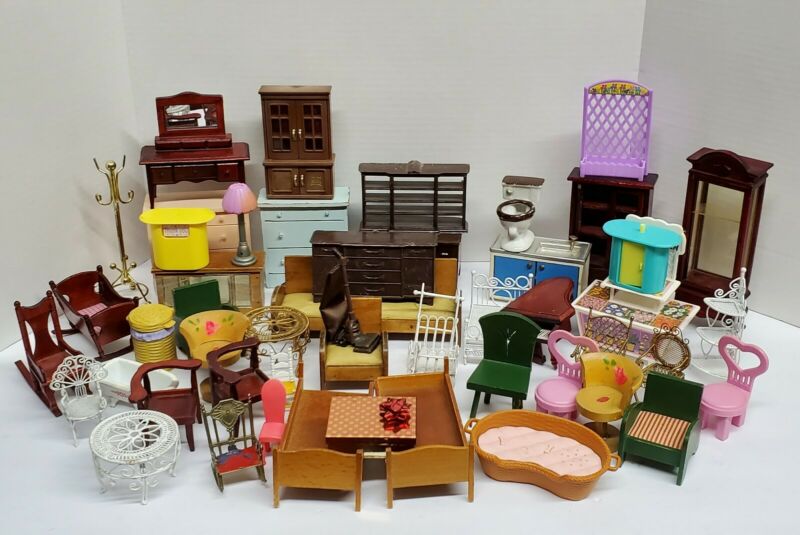 Title (ebay affiliate link): Vintage Dollhouse Furniture and Accessories Huge Lot 50 Pieces