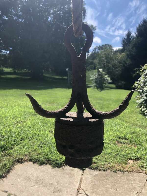 Title (ebay affiliate link): ANTIQUE PRIMITIVE HAND FORGED CAST IRON ANCHOR 3 HOOKS ROPE NAUTICAL HEAVY