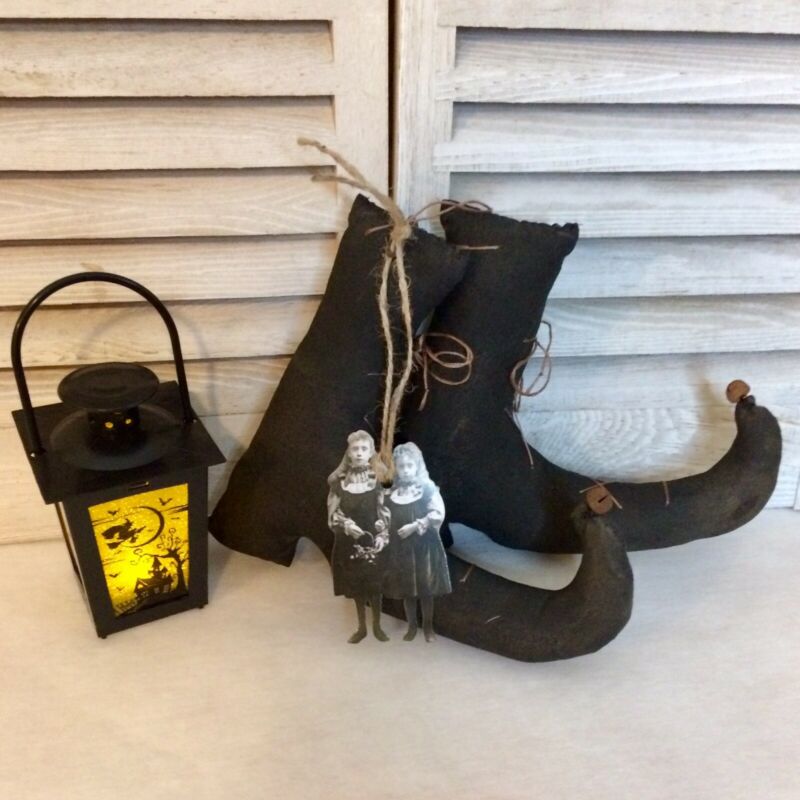 Title (ebay affiliate link): Primitive Witch Boots with Lantern "Girls Just Wanna have Fun" Halloween