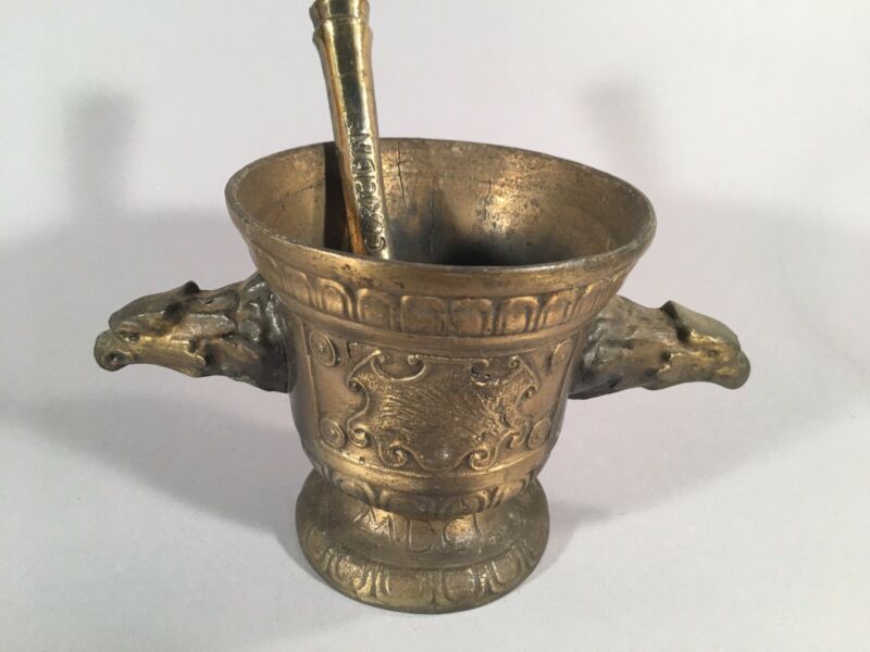 Title (ebay affiliate link): Vintage MDCL VFOLAN "Coricidin" Brass Tone Metal Eagle Mortar and Pestle