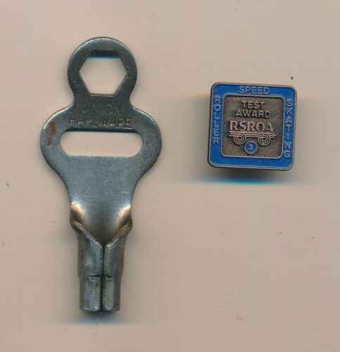 VINTAGE ROLLER SKATE SPEED TEST AWARD PIN & UNION HARDWARE KEY RSROA