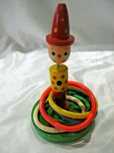 VINTAGE WOODEN CLOWN 5 RING TOSS MADE IN JAPAN