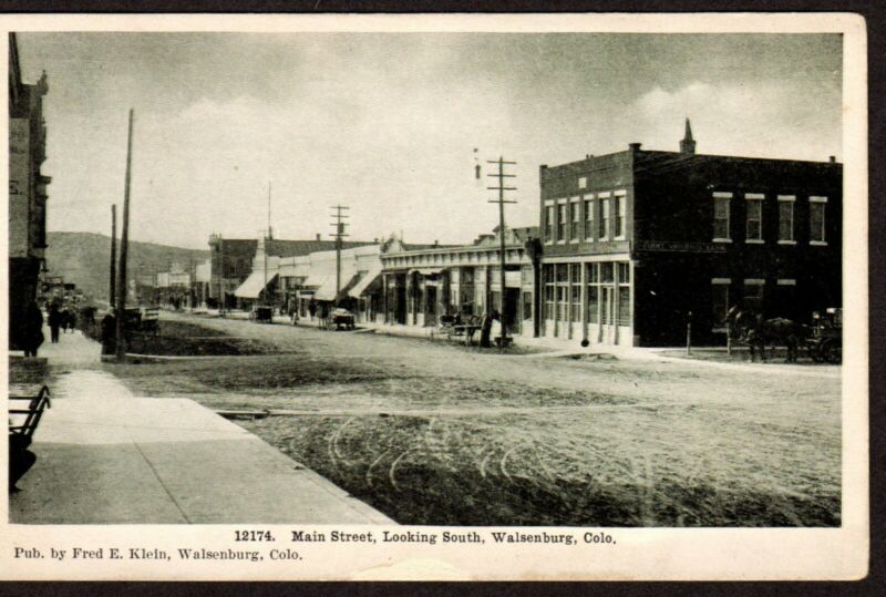 Title (ebay affiliate link): B&W Main Street, looking South, Walsenburg, Colorado. Dirt Road
