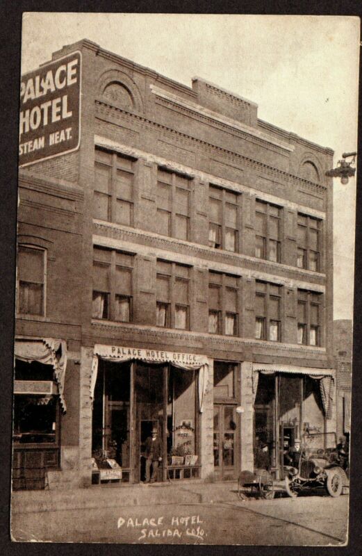 Title (ebay affiliate link): B&W Palace Hotel, Salida, Colo. 1916. Auto. Men out front.