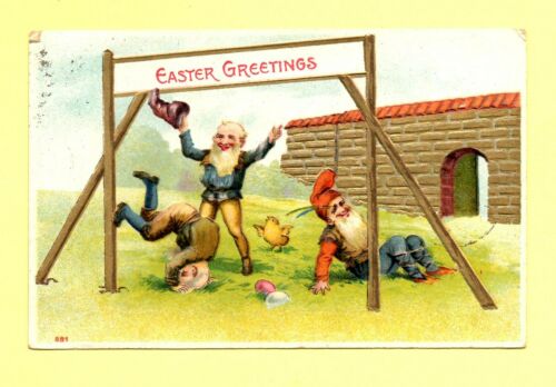 Title (ebay affiliate link): Vintage Easter Greetings With 3 Elves Celebrating 1906 Postcard