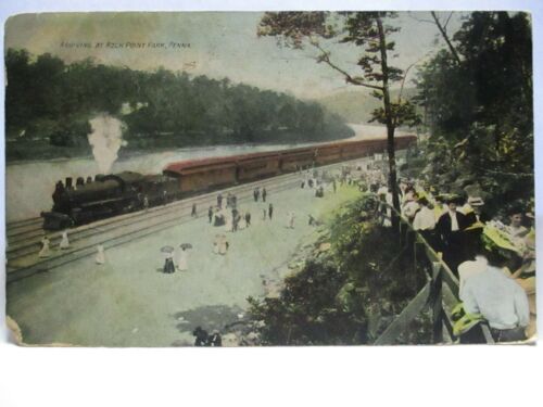 1910 POSTCARD " ARRIVING AT ROCK POINT PARK PENNA " AMUSEMENT PARK W/ TRAIN