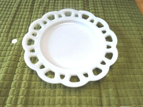 White Milk Glass - Vintage Open Lace Edge Plate. 8 inch plate