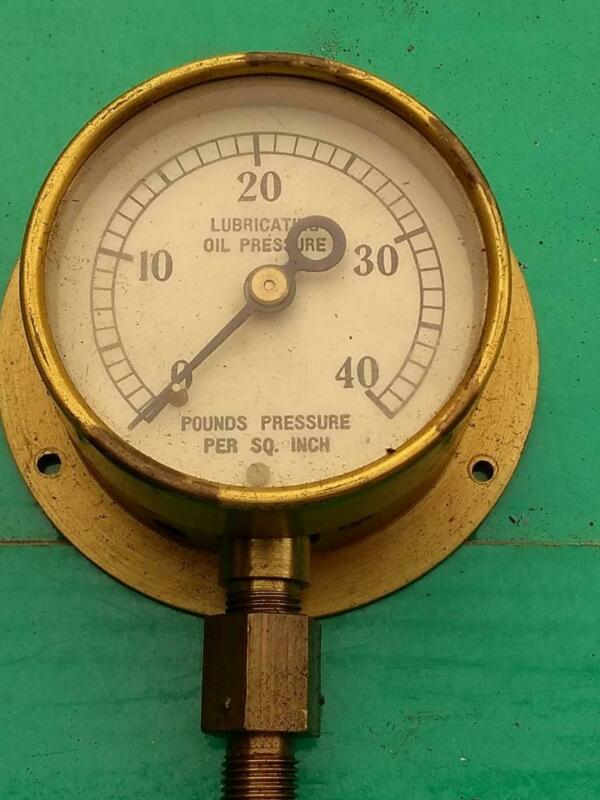 Vintage brass 4" lubricating oil pressure gauge 0 - 40psi - Steampunk
