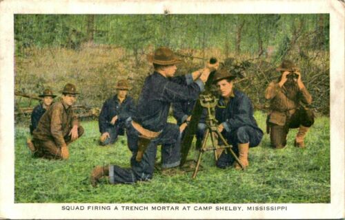 Title (ebay affiliate link): Vintage WWII Postcard CAMP SHELBY MS "FIRING A TRENCH MORTAR" SOLDIER''S NOTE