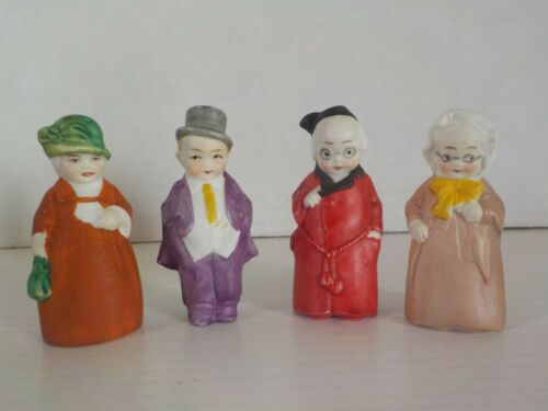 Antique German Bisque Set of Four Small People Dolls Figurines 2 1/4" Tall
