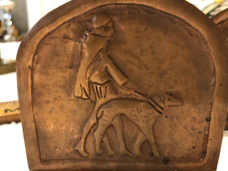 Title (ebay affiliate link): Antique Hand Crafted Copper Art Deco Vintage Bookends Lady Greyhound Dog Rare