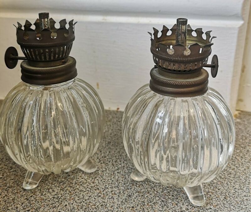 Title (ebay affiliate link): PAIR OF VICTORIAN SMALL GLASS OIL LAMPS MINIATURE