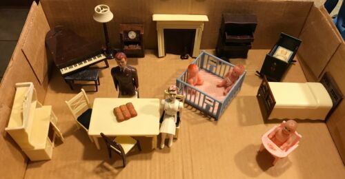 20 Pieces Renwal Brand Vintage Doll House Furniture-People,Babies,Piano+Calalog