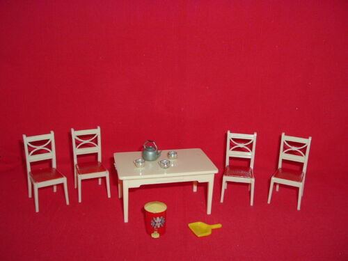VINTAGE RENWAL DOLLHOUSE FURNITURE STEP-ON CAN KITCHEN TABLE 4 CHAIRS 1:16 Scale