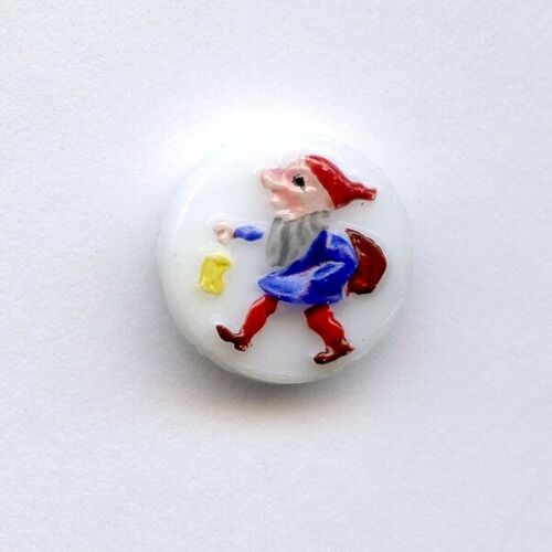Title (ebay affiliate link): SENSATIONAL MILK GLASS button--BRIGHTLY COLORED GNOME CARRYING LANTERN--7/16"