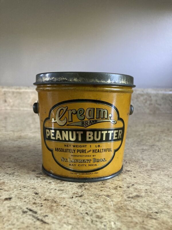 Title (ebay affiliate link): Cream Brand Peanut Butter Tin St. Laurent Bros Bay City, Michigan
