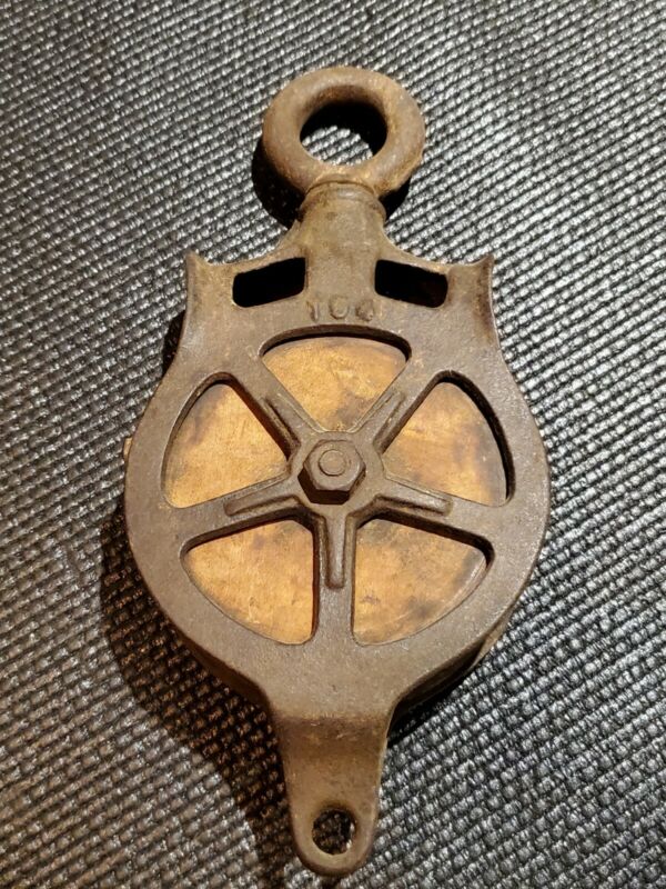 Title (ebay affiliate link): Antique Vintage Cast Iron Barn Pulley Rustic Farm Tool Primitive