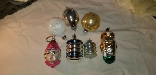 Lot of 7 Antique Mercury Glass Ornaments - Lady''s Head, Owl, Lanterns