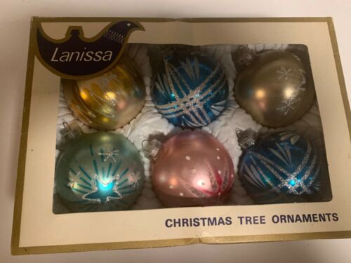 Title (ebay affiliate link): 6 Vintage Lanissa West Germany Christmas Tree Glitter Mica Glass Ornaments