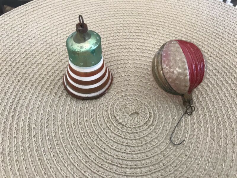 A Pair Of German Antique Mercury Glass Christmas Ornmament PATRIOTIC No Reserve