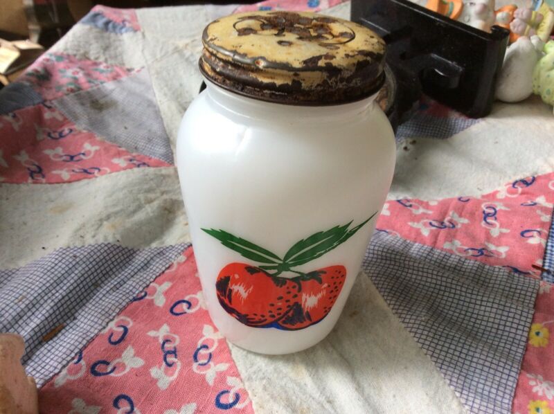 Vintage Fire King White Milk Glass with Red Apple Pepper Shaker