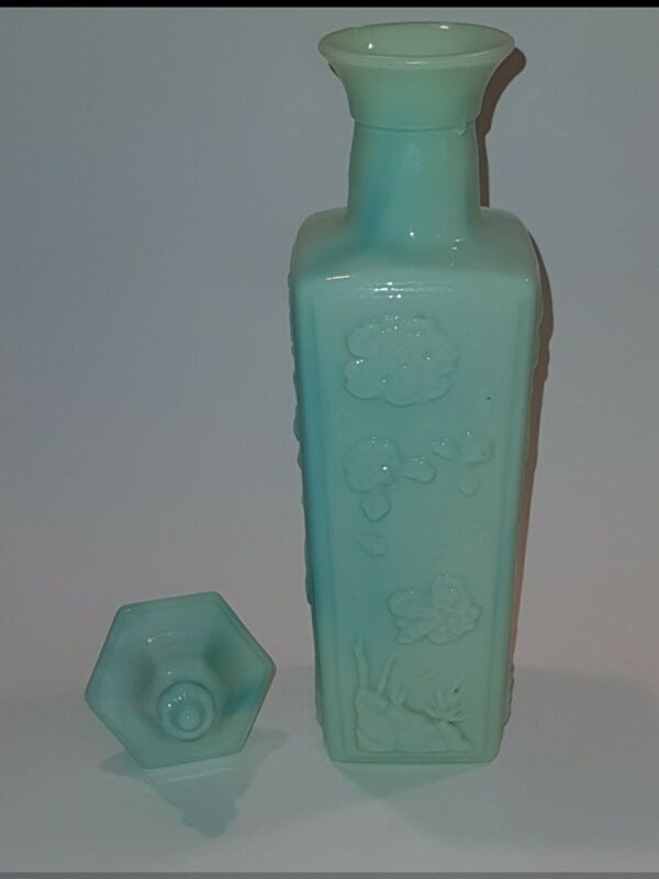 Title (ebay affiliate link): 1972 Jim Beam Liquor Bottle Decanter 12" Green Embossed Marbled Milk Glass