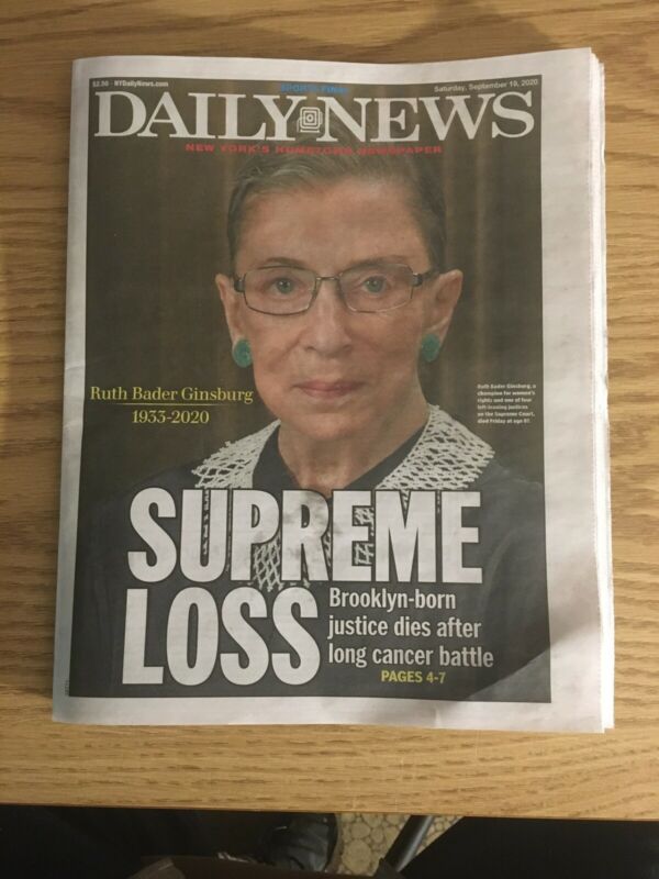Title (ebay affiliate link): DAILY NEWS(THE DEATH OF RUTH BADER GINSBURG)THE NOTORIOUS RBG