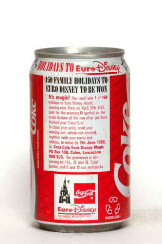 Title (ebay affiliate link): 1992 Coca Cola can from the UK, Holidays to EuroDisney