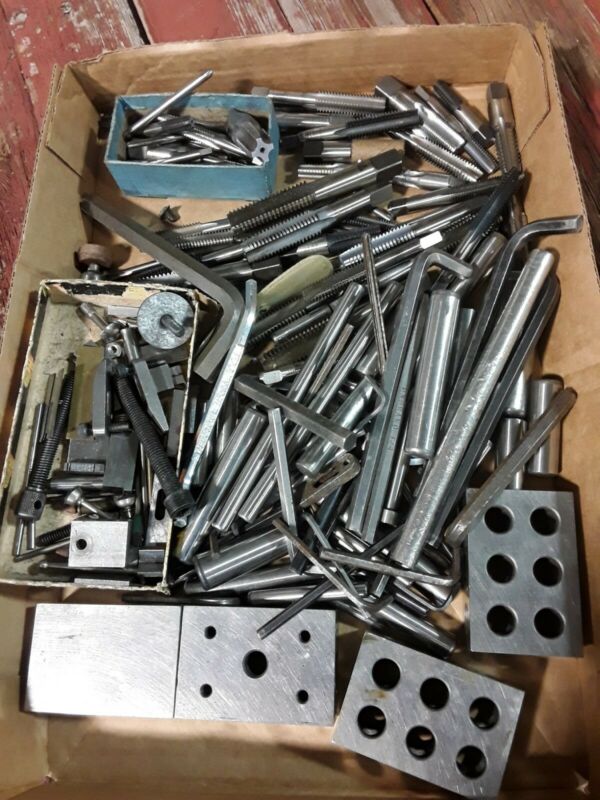 Title (ebay affiliate link): HUGE LOT MACHINISTS METAL LATHE MILL HAND TAPS,BLOCKS,RODS,ALLEN WRENCHES & MORE