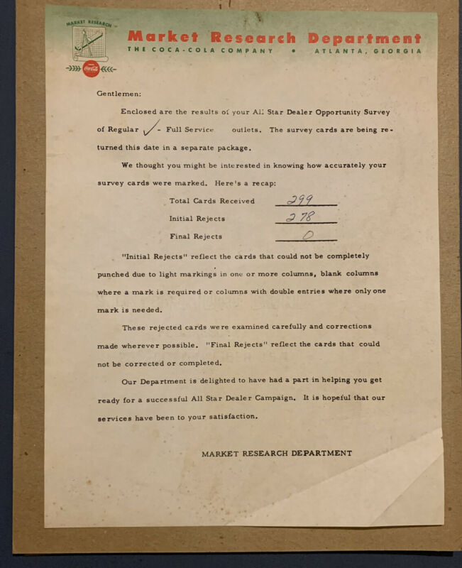 Title (ebay affiliate link): Market Research Department For Coca-Cola Co. Atlanta GA 1958 For Case Selection