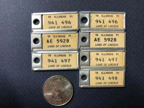 Lot of 7 Vintage Illinois 1971 DAV Mini License Plates Key Chain $1 opening bid