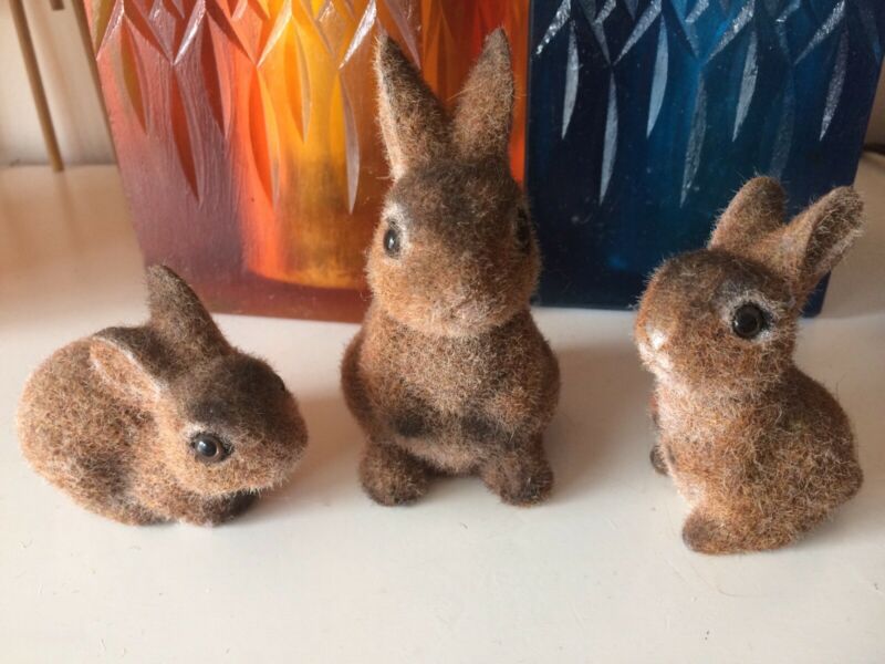 3 Josef Bunny Rabbit Family Figurines Flocked Japan