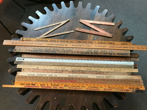 Title (ebay affiliate link): JOHN DEERE, SEARS ROBUCK, KALAMAZOO,CHEVY,FUNERAL 15 ANTIQUE WOOD YARDSTICKS!!