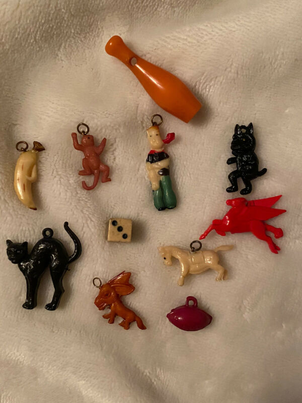 Title (ebay affiliate link): VINTAGE 40s? CRACKER JACK CELLULOID GUMBALL CHARMS LOT 11pc Pegasus Popeye Horse