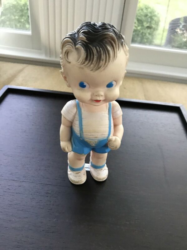 Title (ebay affiliate link): Vintage Sun Rubber Co Ruth E. Newton Boy Doll Squeaker Toy