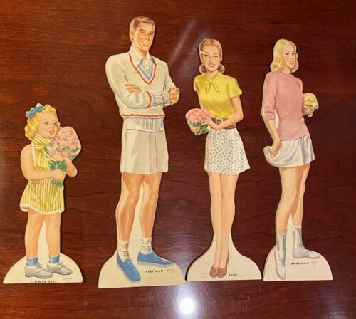 Title (ebay affiliate link): Vintage Paper Dolls Bride Bridesmaid Wedding Wooden Flower Girl Best Man U.S.A.