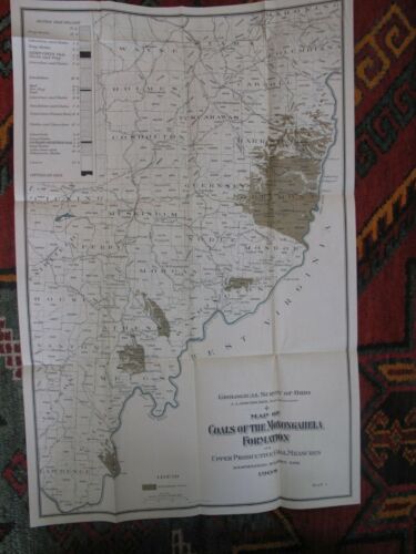 Title (ebay affiliate link): Pittsburgh Coal Mining Ohio River Valley Folding Map 1908 Geology Some Color