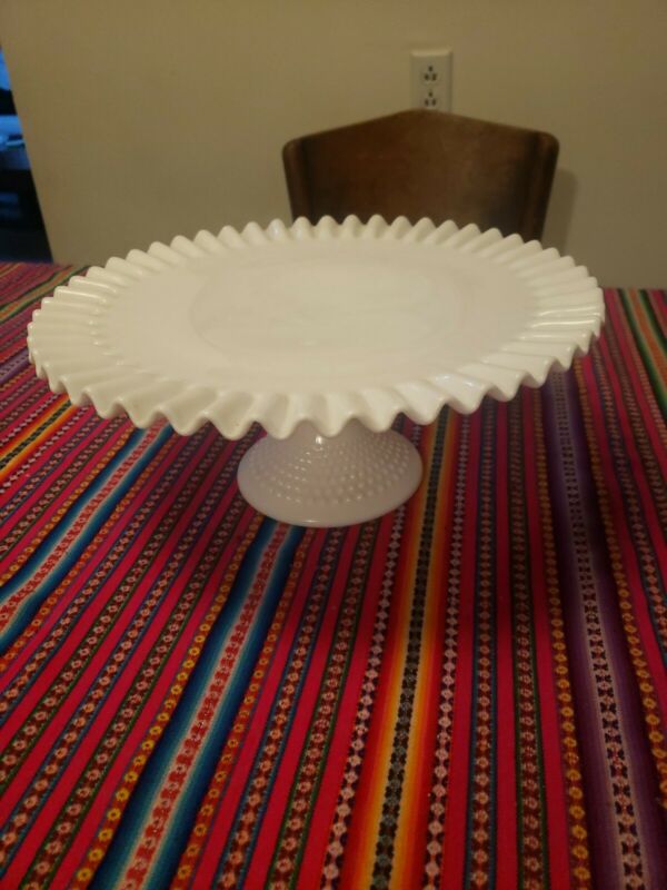 Vintage Fenton Hobnail Milk Glass Cake Stand or Cake Plate Wedding Cake 12 1/2"