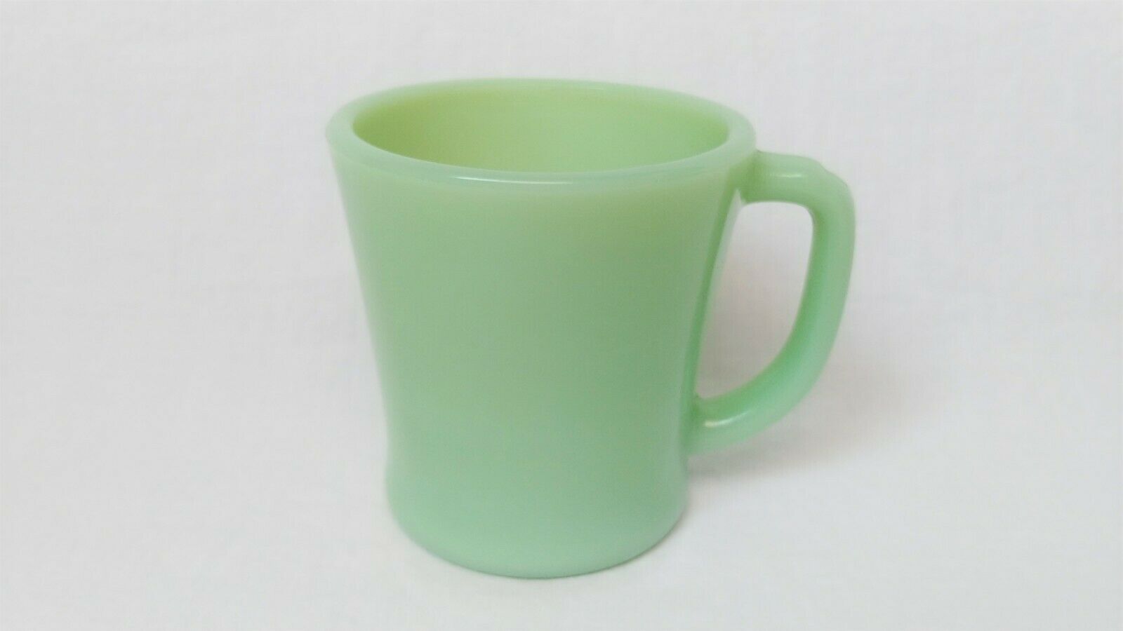Title (ebay affiliate link): Jadeite Fire King Ware D Handle Cup - Green Milk Glass Anchor Hocking Coffee Mug