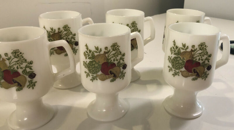Title (ebay affiliate link): Set Of 6 White Footed Mugs. Corning Spice Of Life. White Milk Glass GUC