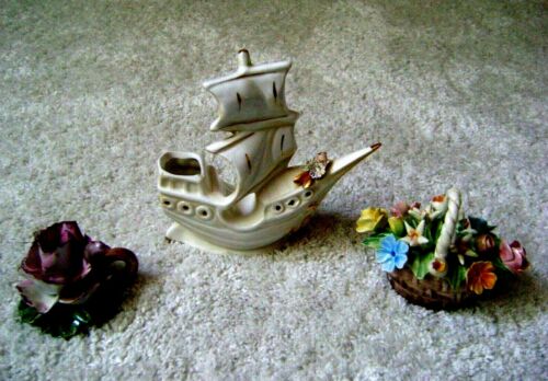 Title (ebay affiliate link): CAPODIMONTE NAPLES COLLECTION - POSIES GALLEON, FLOWER BASKET, TAPER HOLDER -vgc