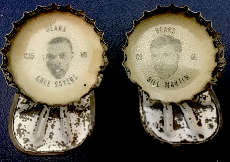 EXTREMELY RARE 1965 BEARS COCA- Cola LIFT TOP BOTTLE CAPS- GALE SAYERS/B. MARTIN