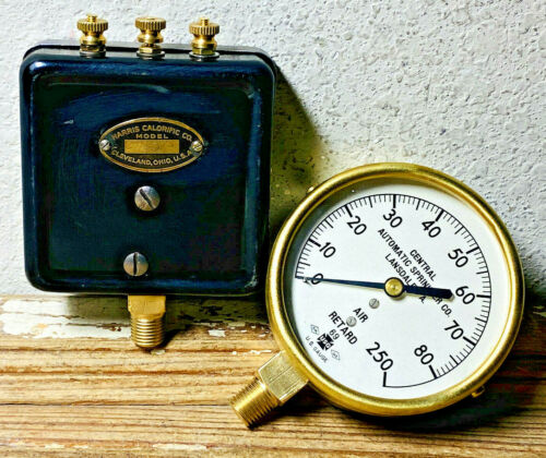 Title (ebay affiliate link): 2 LARGE 4" Vintage Pressure Gauge Lot Square Brass Downtube Steampunk Industrial