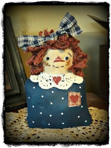Title (ebay affiliate link): ****Primitive `Handmade Raggedy Ann Stump Doll` Doily Collar``Shelf Sitter****